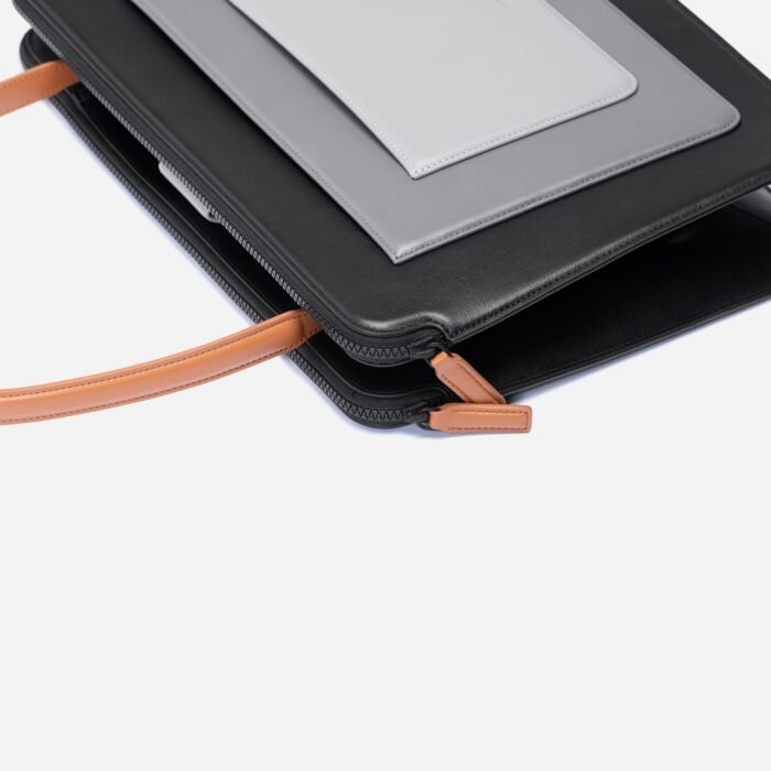 Designed in a silhouette inspired by Art-Deco style, this bag is expertly crafted from Italian calf leather with microsuede lining. Packs a ton of features in a slim, compact space so you can carry your office life in the bag ?? including a 16?? Macbook Pro. It has additional two tight slots on the front that you can fit your notebook, phone or tablet.