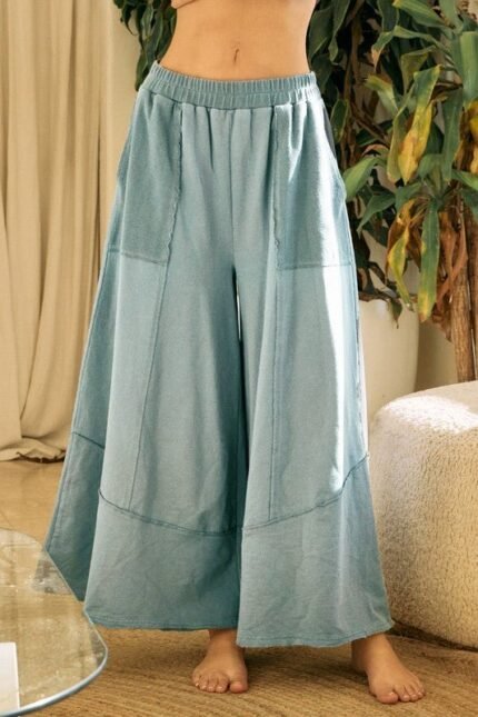 Oddi Solid Color Wide Leg Sweatpants in Blue $60.00
