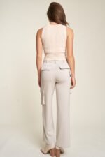 Davi & Dani Tummy Control Mid Rise Cargo Pants in Cool Beige