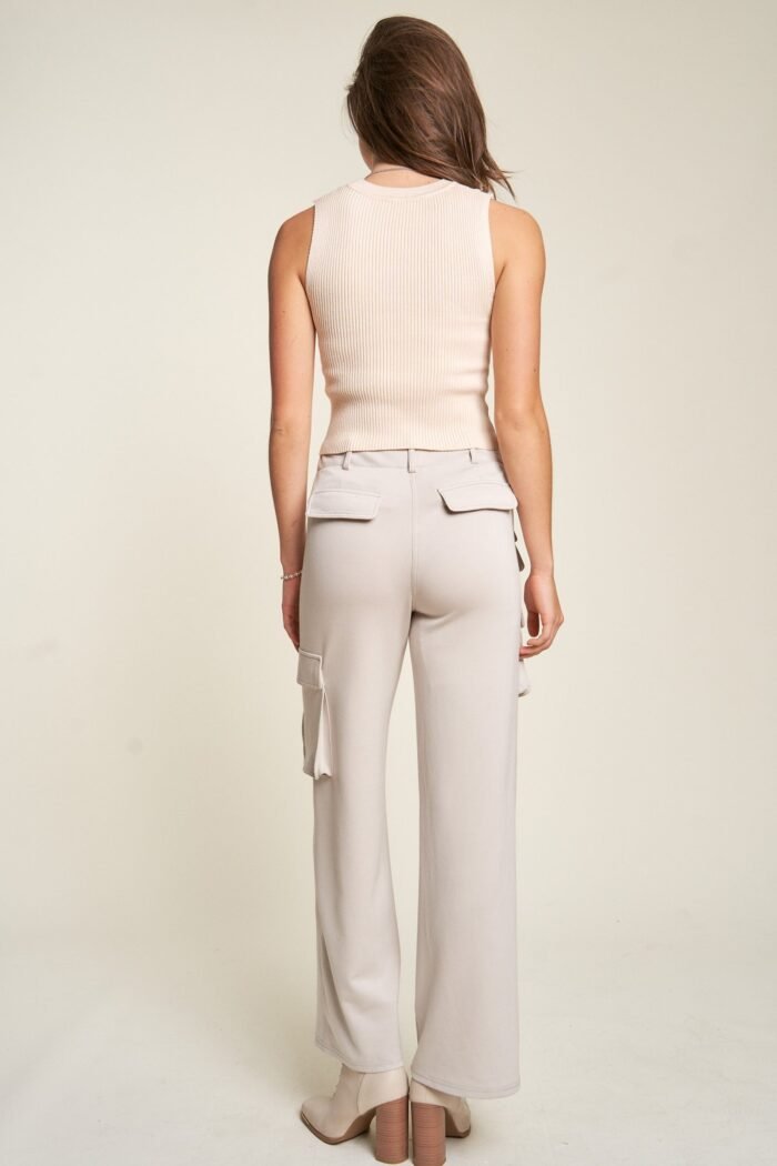 Home Pants Davi & Dani Tummy Control Mid Rise Cargo Pants in Cool Beige