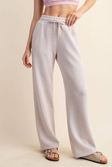 Rae Mode Scuba Knit Straight Leg Pants in Light Heather Grey