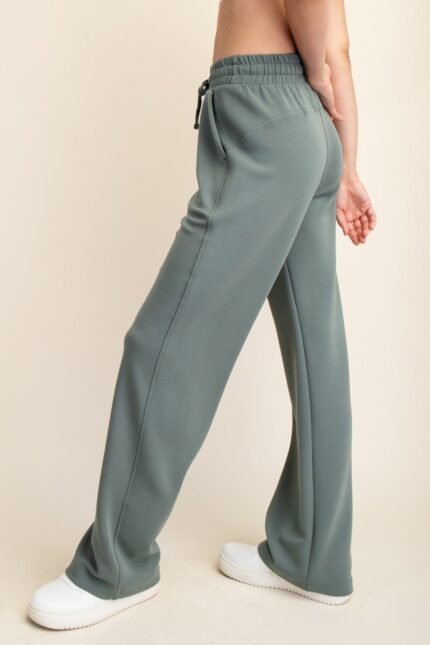 Rae Mode Scuba Knit Straight Leg Pants in Sage Leaf