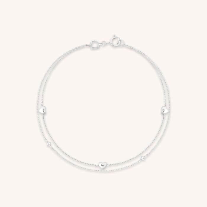 Heart Double Chain Bracelet in Solid Silver